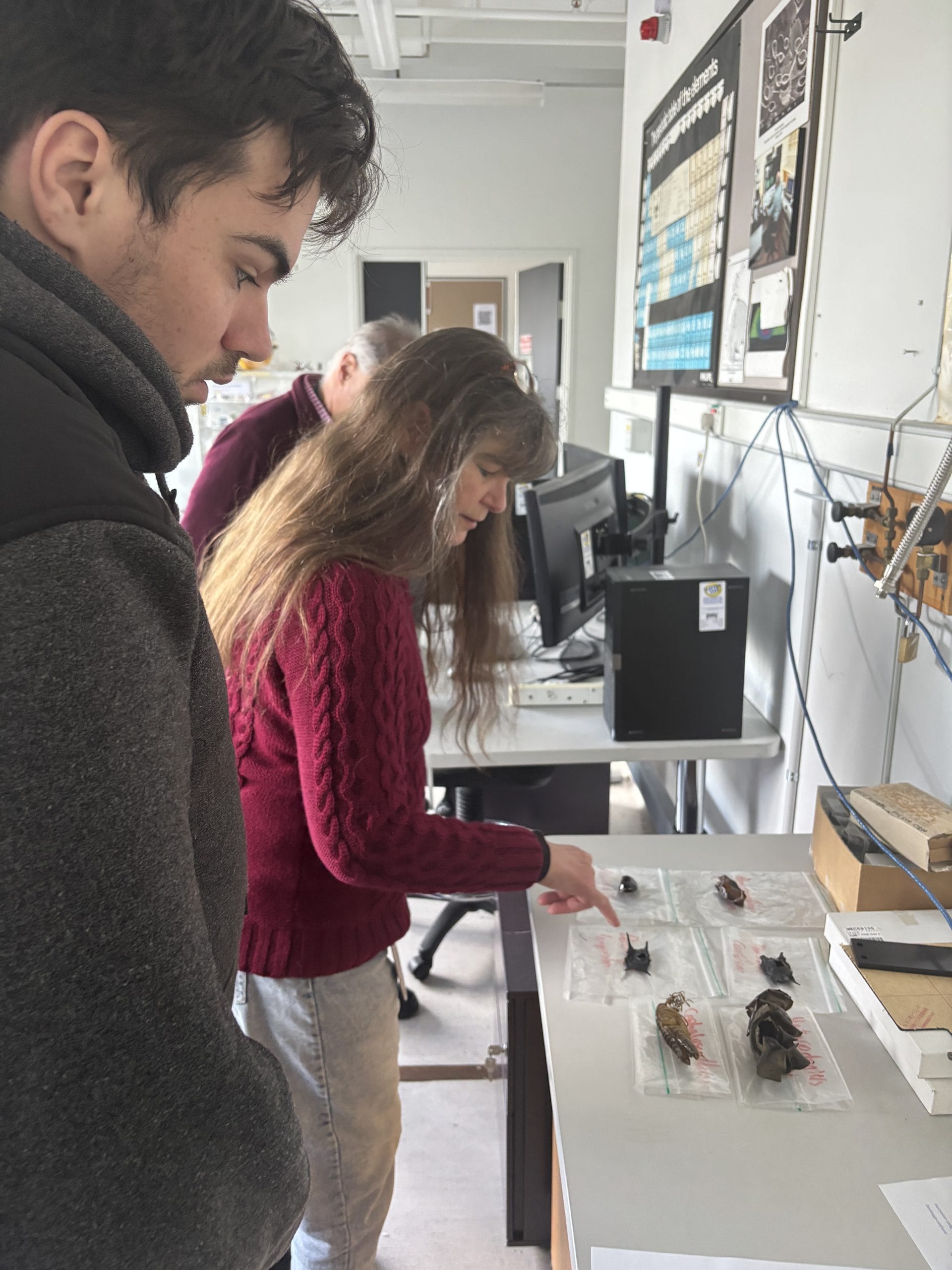 Ben then had the opportunity to visit the Electron Microscopy department, where Malisja and Mark showed him powerful electron microscopes in action. He was fascinated by how these advanced tools reveal incredibly tiny details that are invisible to the naked eye. One of the highlights was seeing a fly magnified 1,000 times — an experience that gave Ben a whole new appreciation for the microscopic world.