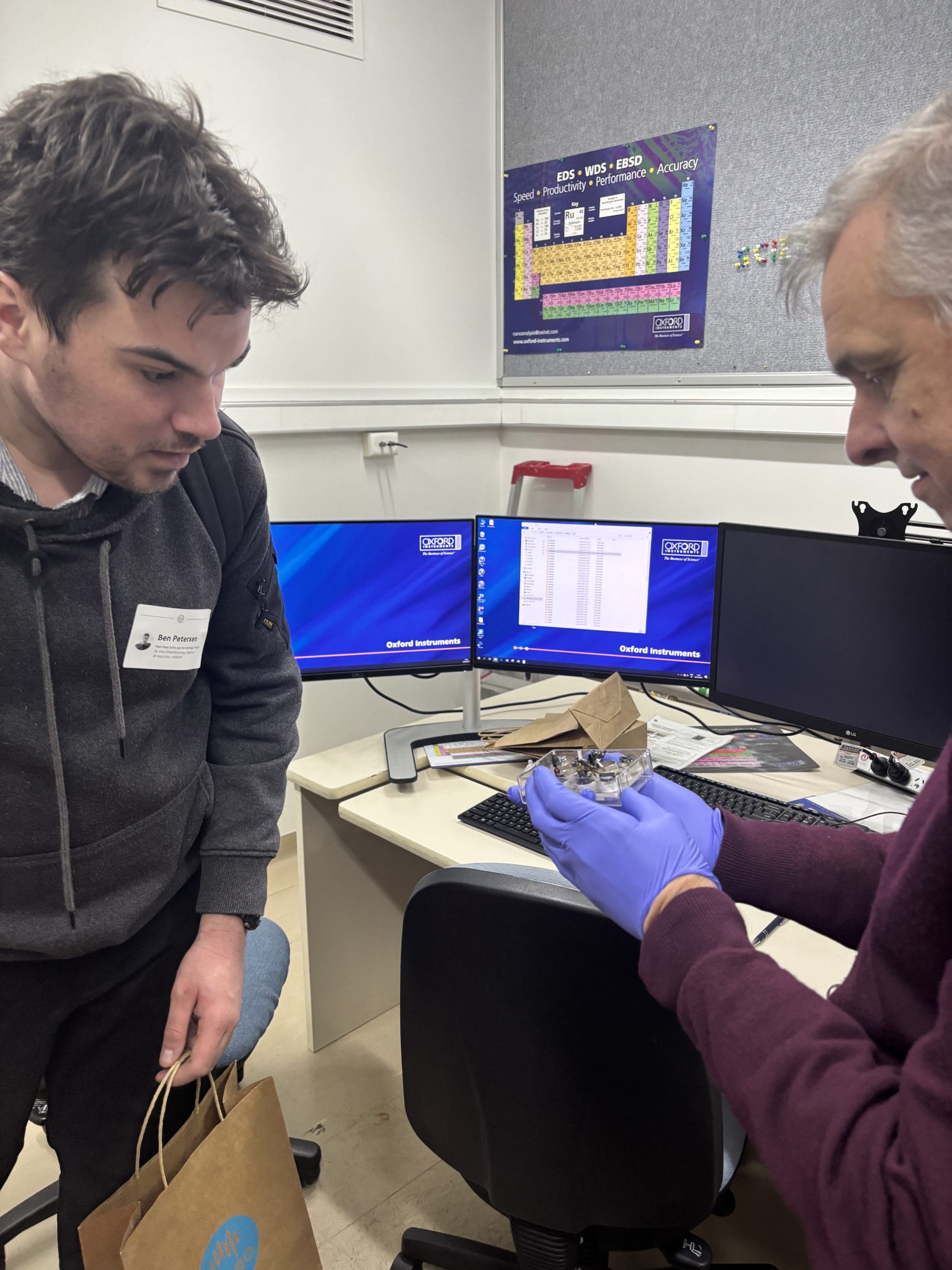 Ben was warmly welcomed by Dr. Malisja de Vries, Microscopy Manager, and Mr. Mark Greaves, Microscopy Team Leader. They generously spent the morning giving Ben a tour of the site, explaining their work and how it all comes together.