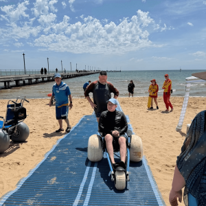 There was a sense of excitement in the air as our participants arrived at the Frankston foreshore for the opening of Australia’s Most Accessible Beach. For many, this wasn’t just a day out, it was an opportunity to experience the beach in a way that had previously felt out of reach.